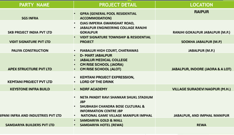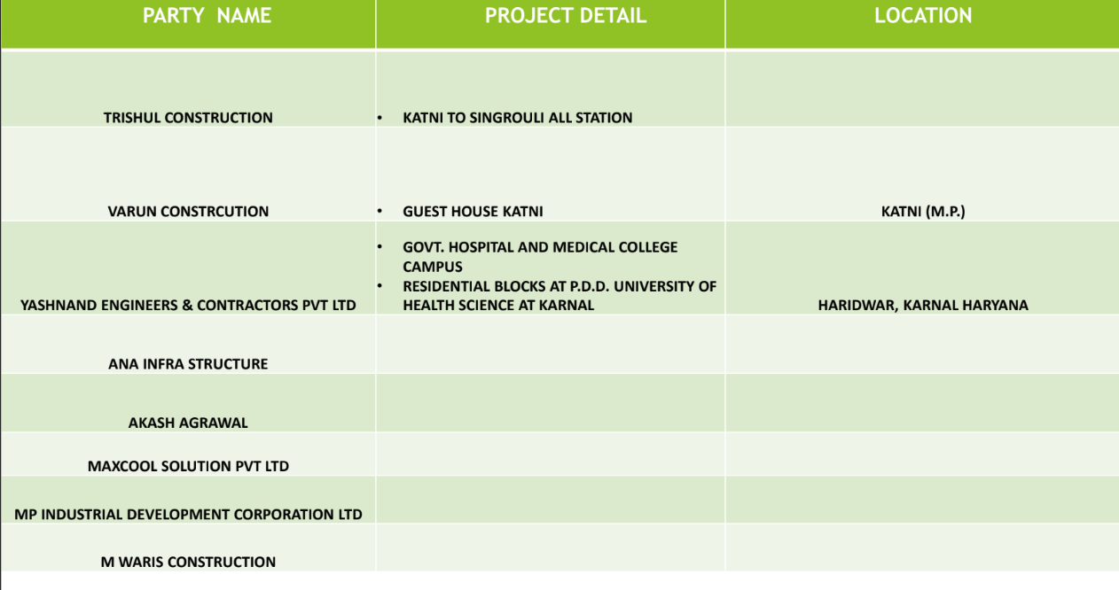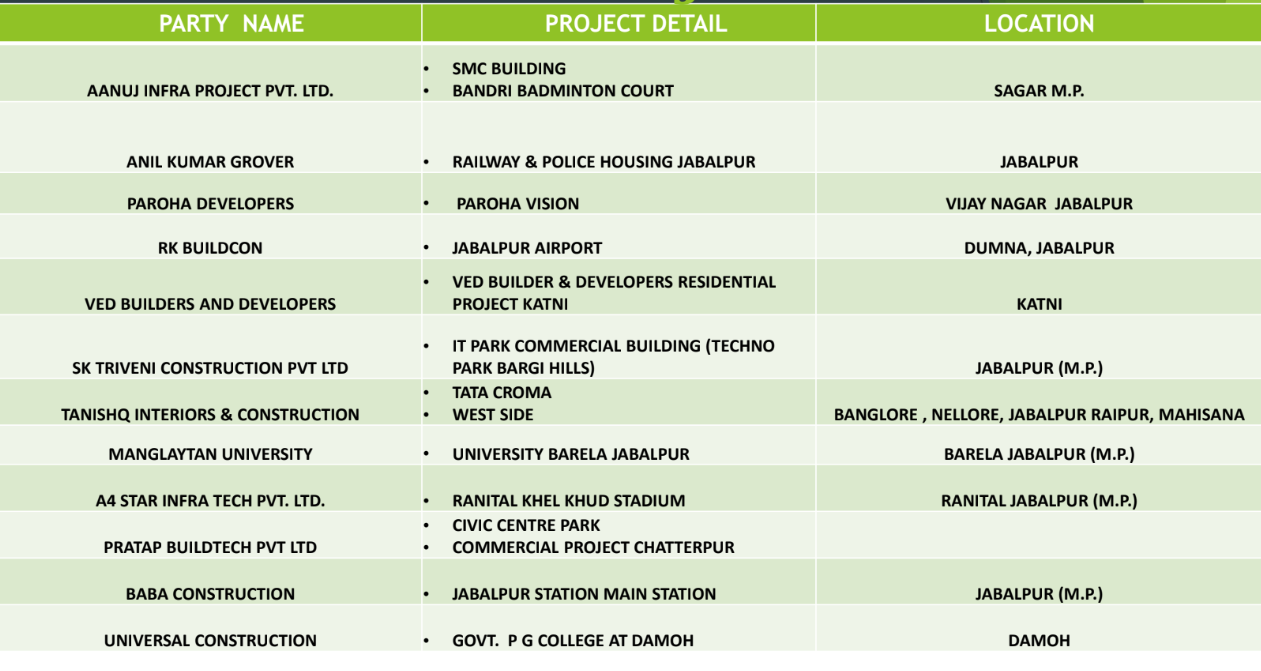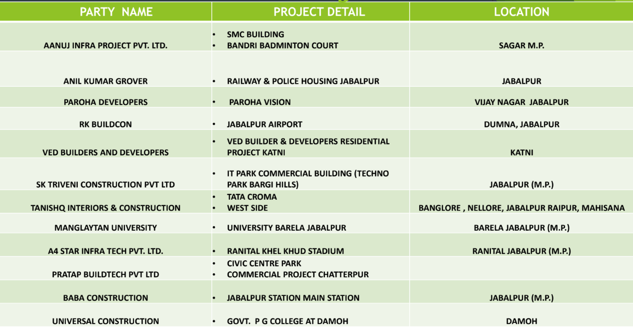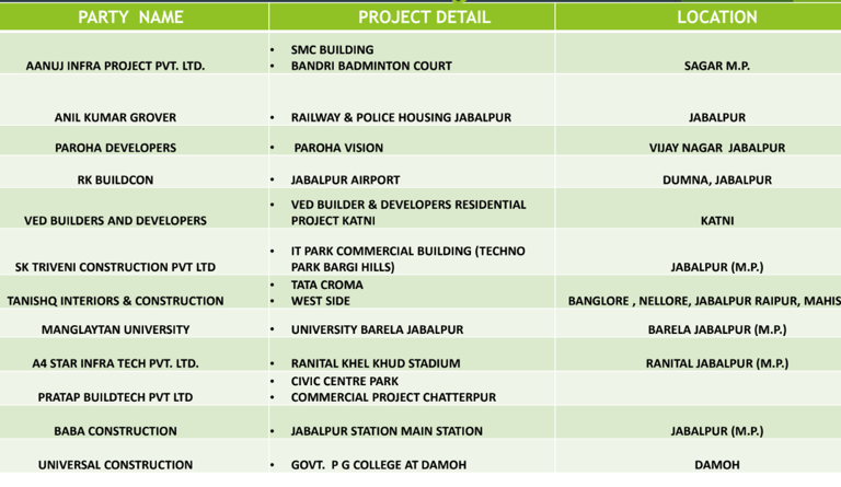 • Collaborated with Nepani Industries to build the expansive cricket stadium in Jabalpur.