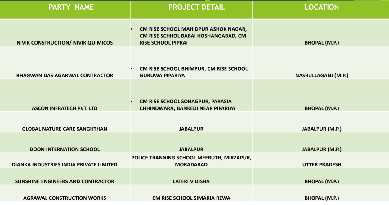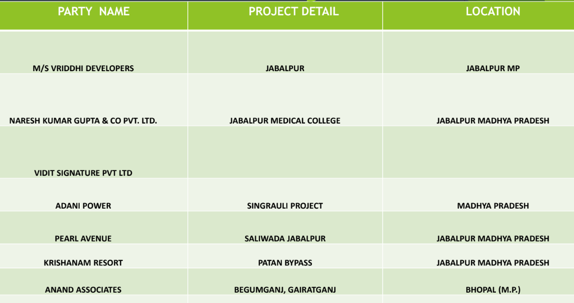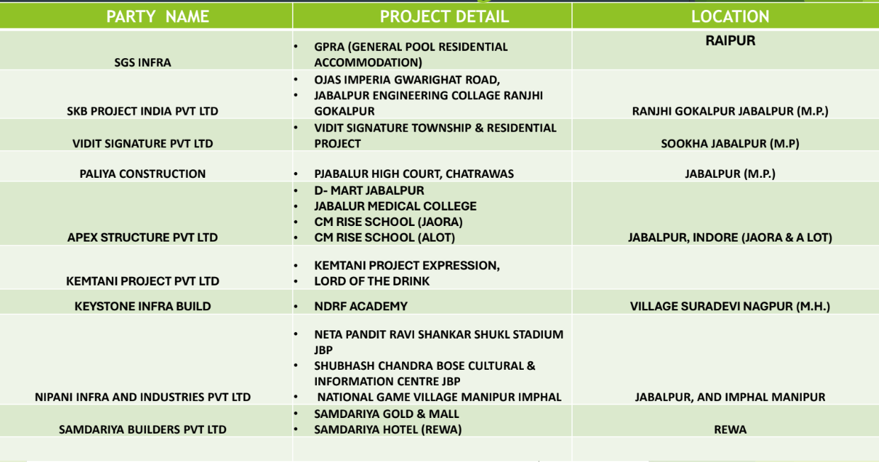 • Partnered with Apex Structure Pvt. Ltd. for the construction of a prestigious medical college in Jabalpur and Gurukulam Awasiya Vidyalaya in Shahdol.